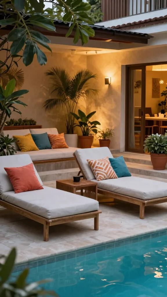 Turn your pool area into a cozy retreat with smart decor and furnishings. Add comfortable loungers with soft cushions, umbrellas for shade, and outdoor rugs to enhance comfort. String lights or lanterns can create a magical atmosphere for evening swims.