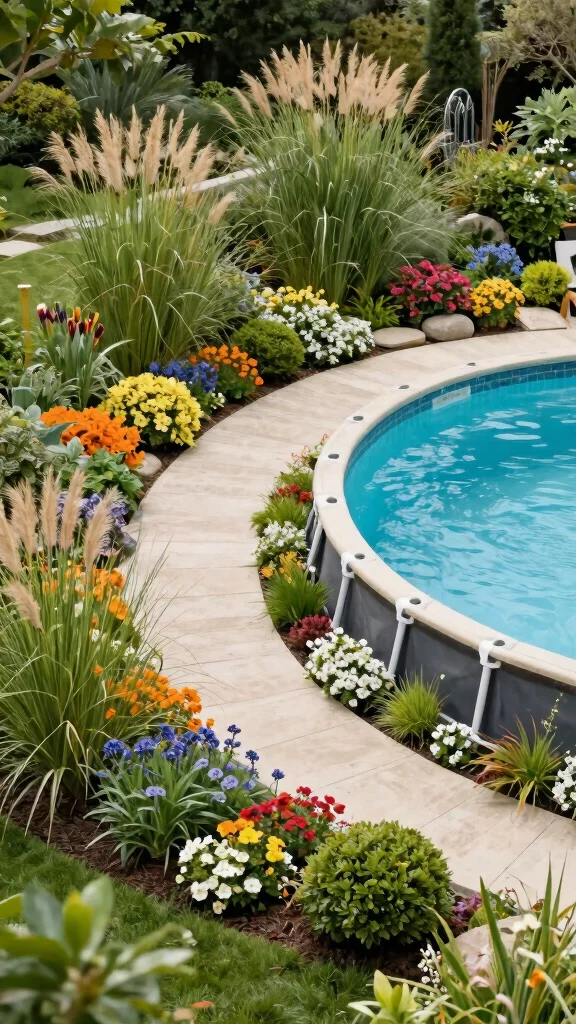 – Pathways: Create walking paths with stone or mulch for easy navigation around the pool area.