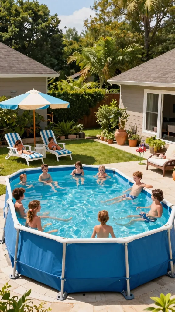 The size of your pool impacts both the space it occupies and your enjoyment. Consider how many people will use it simultaneously. A small pool (12-15 feet) is perfect for children and casual fun, while larger pools (24 feet or more) accommodate family gatherings. Measure your yard to ensure there’s enough space for both the pool and safe walking areas.