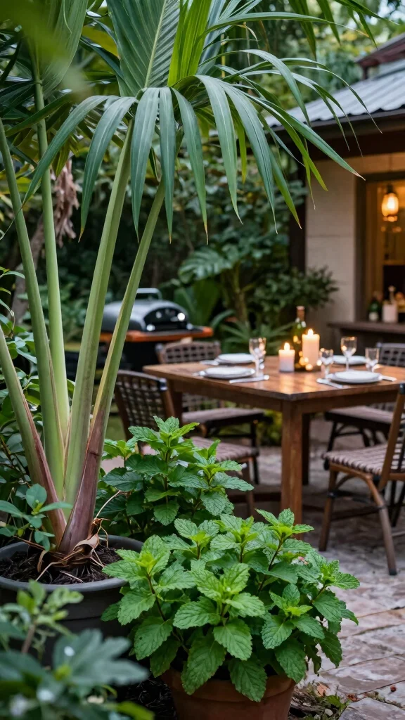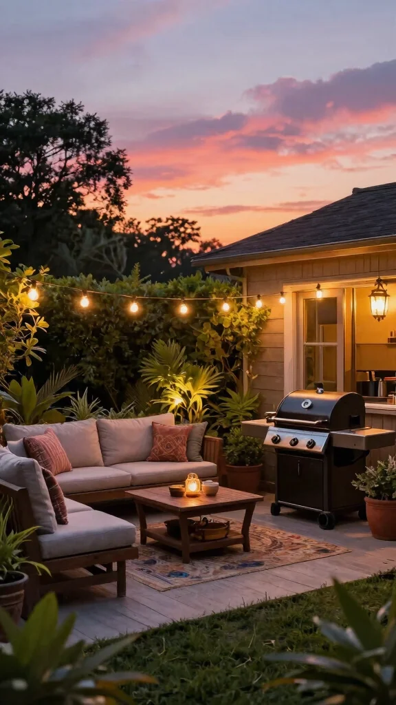 Keep decor minimal but impactful. Use a few potted herbs near the grill for fragrance and utility, add outdoor-safe lanterns or string lights, and choose cohesive colors that echo your space.