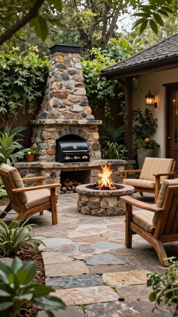 Want to bring nature into your BBQ area? Incorporating stone and wood can create a tactile and visually appealing space that merges with the outdoors. Think about stone paths, wooden furniture, or even a stone fire pit to enhance the ambiance of your gathering spot.