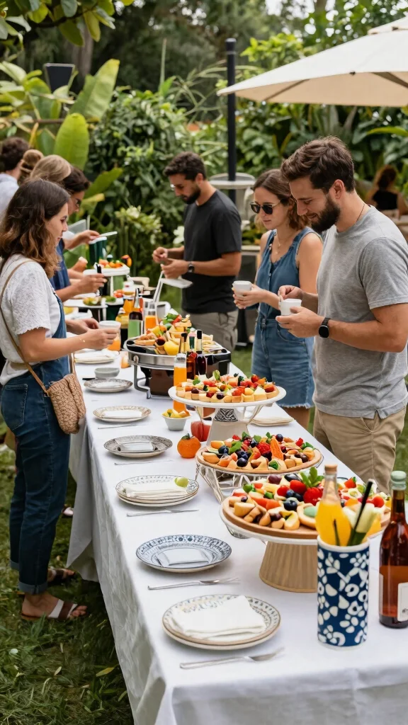– Use a cart or buffet table for drinks, snacks, and sides.