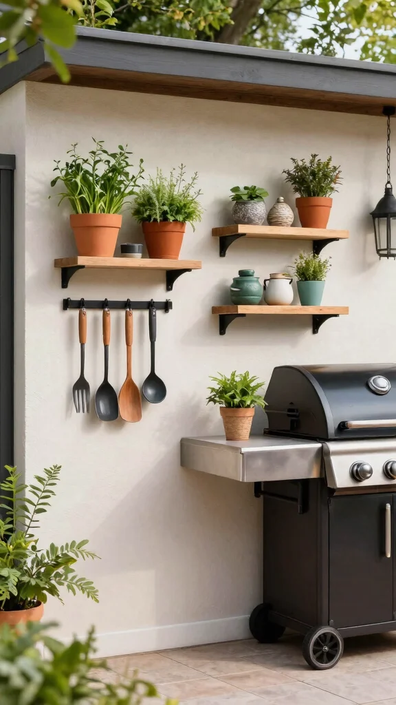 Want to maximize your BBQ area? Don’t overlook the vertical space! Shelves, wall hooks, and hanging pots can help keep your area organized while showcasing your BBQ tools and condiments. This clever use of space allows you to maintain a clean and stylish look, even in smaller areas.