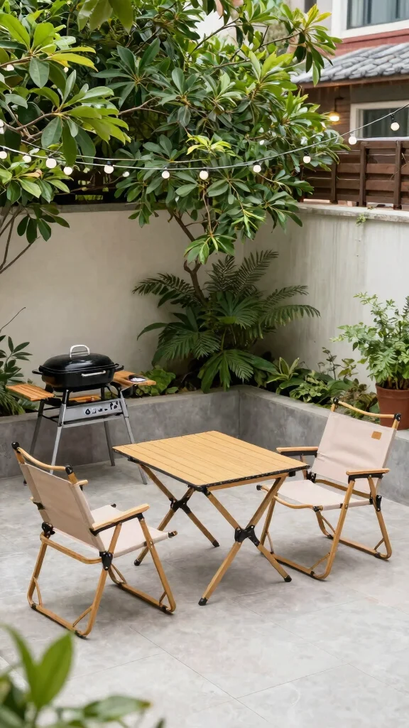 Foldable furniture not only keeps your BBQ area organized but also makes it easy to adapt for any occasion, whether it’s a cozy dinner or a festive gathering!