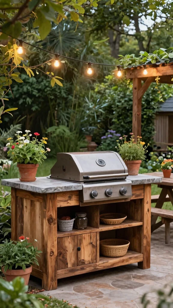 A rustic grill station not only serves as an excellent cooking spot but also enhances the overall aesthetics of your backyard, making it a perfect entertainment area.