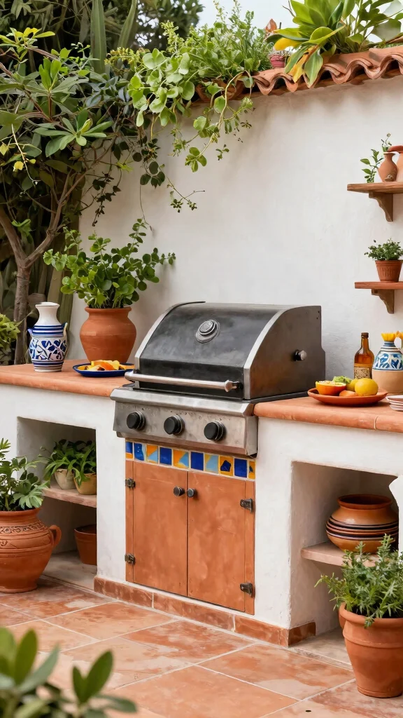 Fun fact: Mediterranean-influenced outdoor kitchens boost mood and meals — homes with terracotta tones, vibrant tiles, and wrought-iron details invite more shared dinners. A bbq covered area grill station becomes the heart of family gatherings.