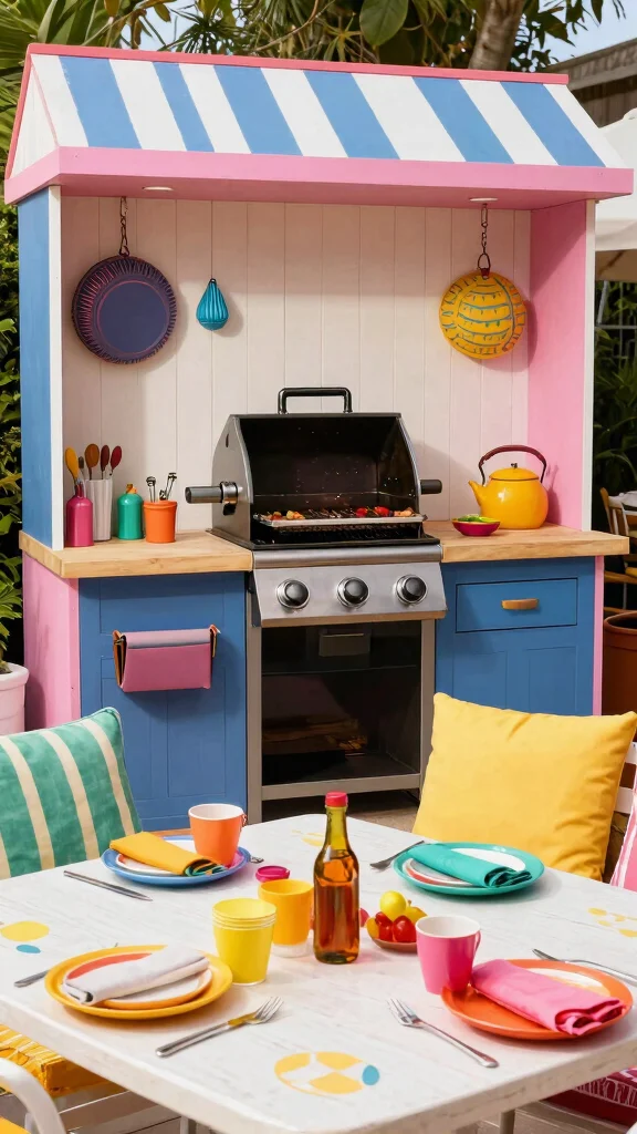 Colorful accents can infuse energy into your BBQ station, making it a lively place for gatherings.