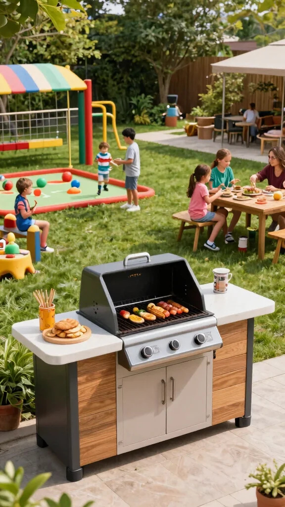 A family-friendly BBQ station encourages bonding over food and creates lasting memories during outdoor gatherings.
