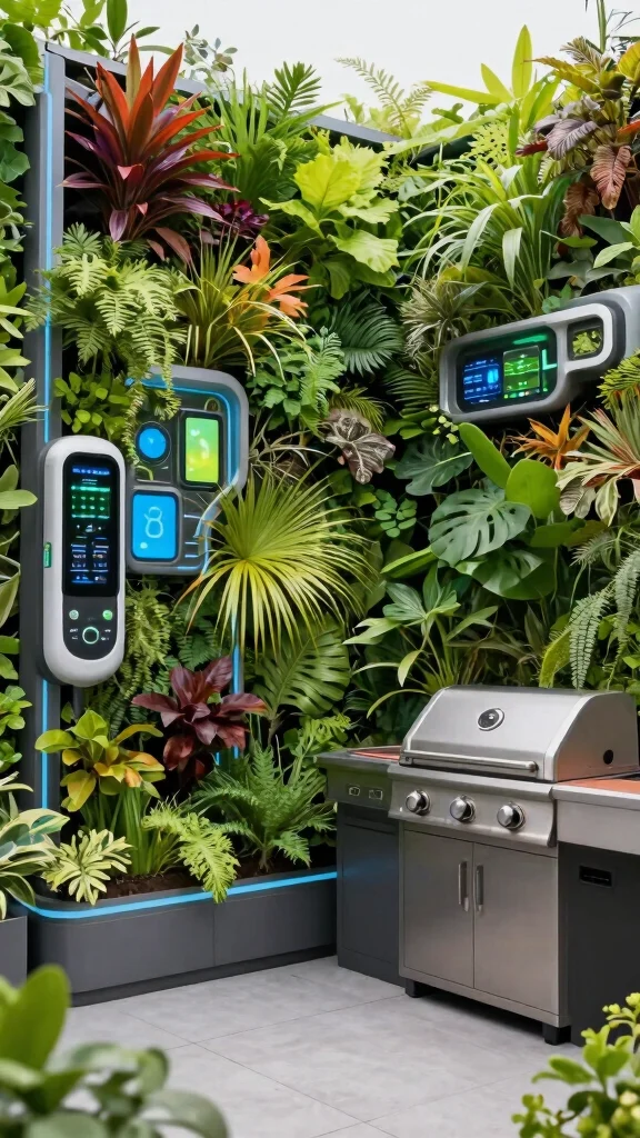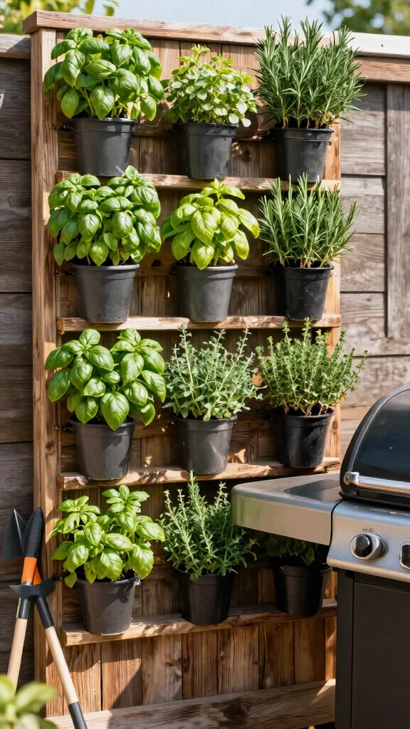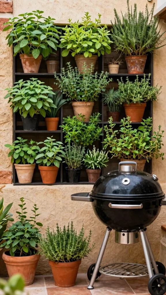 Install a vertical herb wall to easily access fresh flavors for grilling, enhancing your BBQ dishes.