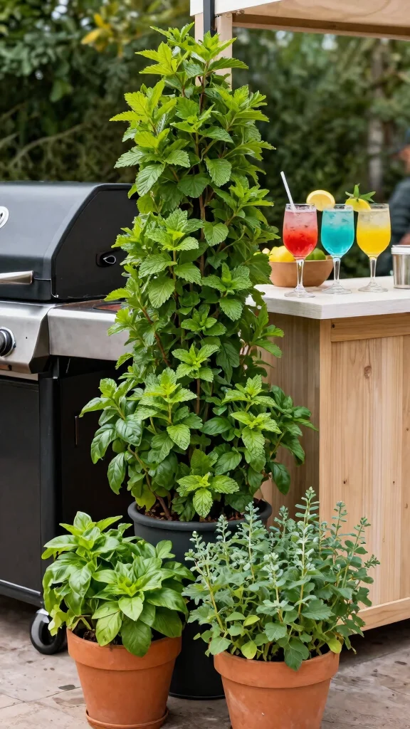 Your bbq grill deserves a living backdrop—try a themed vertical garden. Plant Mediterranean herbs like oregano and thyme where you cook, so fresh flavors are within arm’s reach. Pro tip: pick a theme, then choose herbs and flowers that match your recipes.