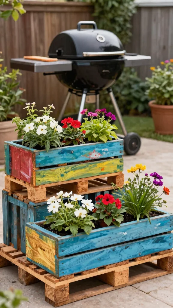 Turn leftover pallets into thriving vertical garden planters for your bbq grill area—you’ll save space and impress guests without breaking the bank. DIY projects like this bring friends together, plus fresh herbs and peppers are just a step away from the grill.