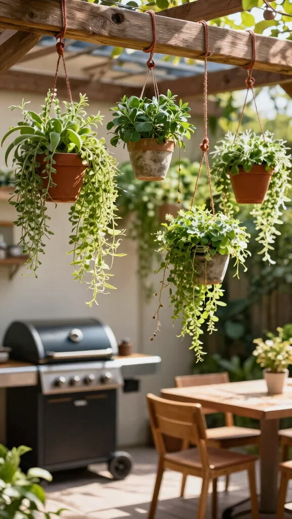 Want to make your BBQ space pop? Hanging vertical gardens can create a stunning focal point while maximizing your area. Using fabric pockets, hanging pots, or even recycled bottles, these gardens draw the eye upward, making your space feel larger and more inviting. Plus, you can grow trailing herbs and fruits just above your grill for easy access!