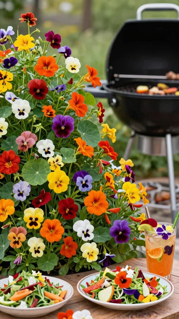 Incorporate an edible flower garden to add unique flavors and aesthetics to your BBQ dishes and drinks.