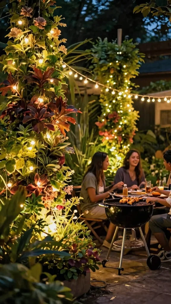 Install garden lighting to create an inviting atmosphere for evening BBQs and highlight your vertical plants.