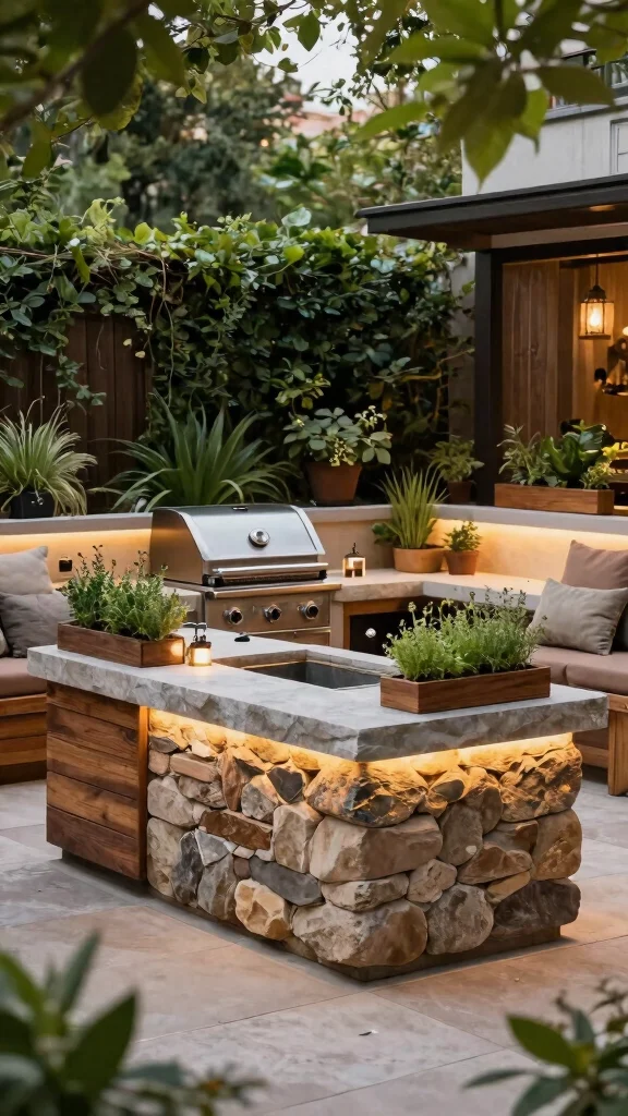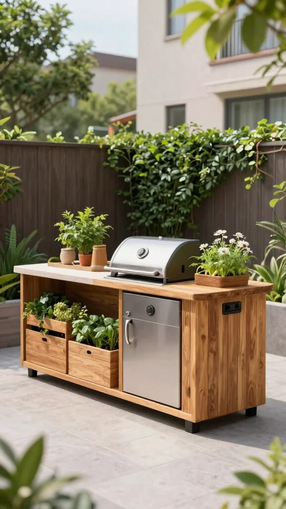 Adding built-in planters for fresh herbs and vegetables not only enhances the look but also provides delightful ingredients for your grilling adventures.