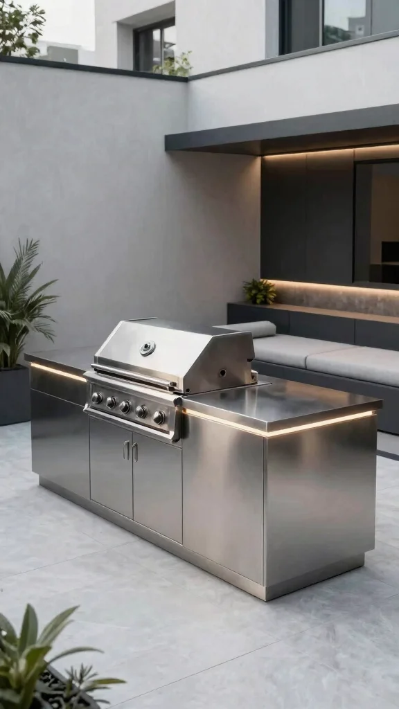 If you crave clean lines and a chic aesthetic, a modern minimalist BBQ island is perfect for you.