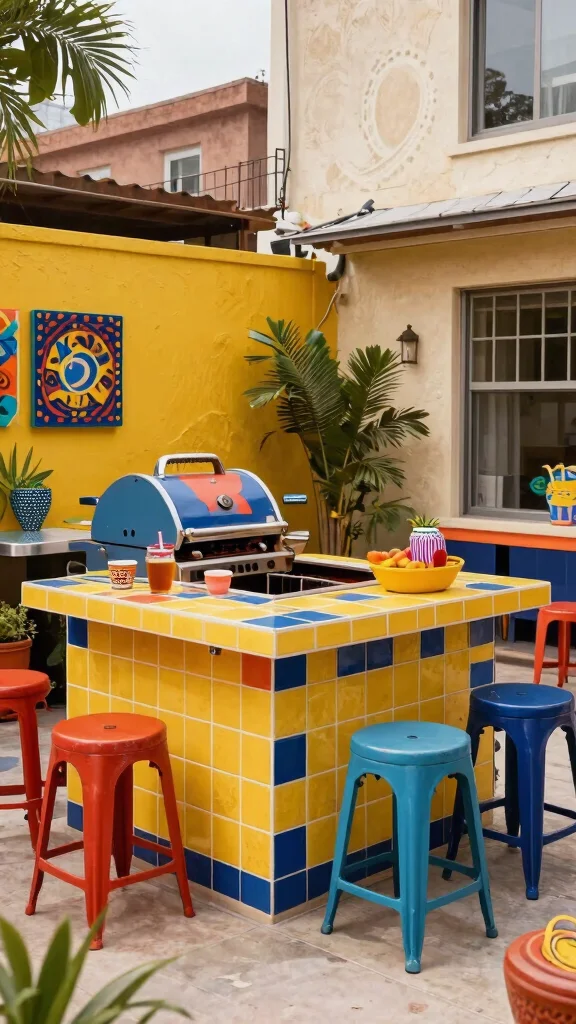 Choose a vibrant grill and pair it with colorful stools or decorative elements that showcase your personality. This playful approach makes your BBQ island the perfect place for socializing and entertaining.