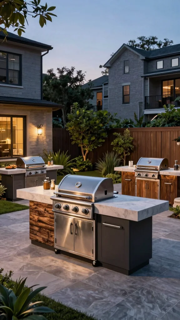Choose durable, space-saving materials and a cohesive look to support outdoor kitchen design and luxury landscaping vibes without clutter.