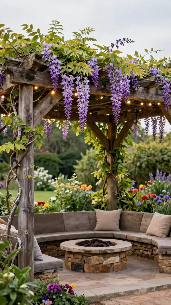 Embrace natural wood finishes for your pergola, enhancing its charm and authenticity. Pair it with a stone fire pit or a traditional brick barbecue to elevate the aesthetic. Add hanging planters or delicate fairy lights to create a magical ambiance for evening gatherings.