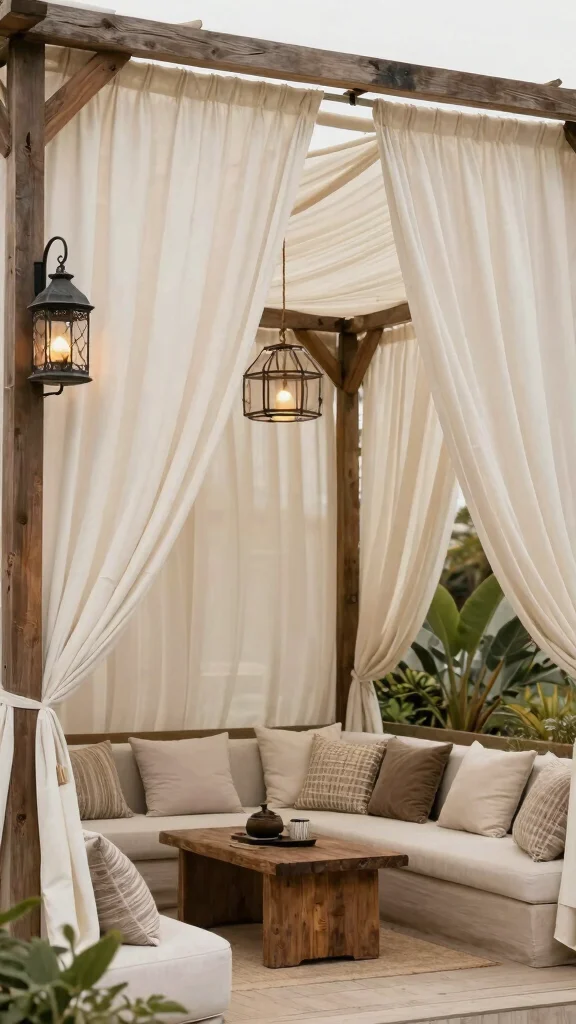 Pair the drapery with decorative elements like lanterns or rustic wooden accents to elevate the luxurious vibe. The soft fabric will create an inviting space that feels like an extension of your home, perfect for casual barbecues or sophisticated gatherings.