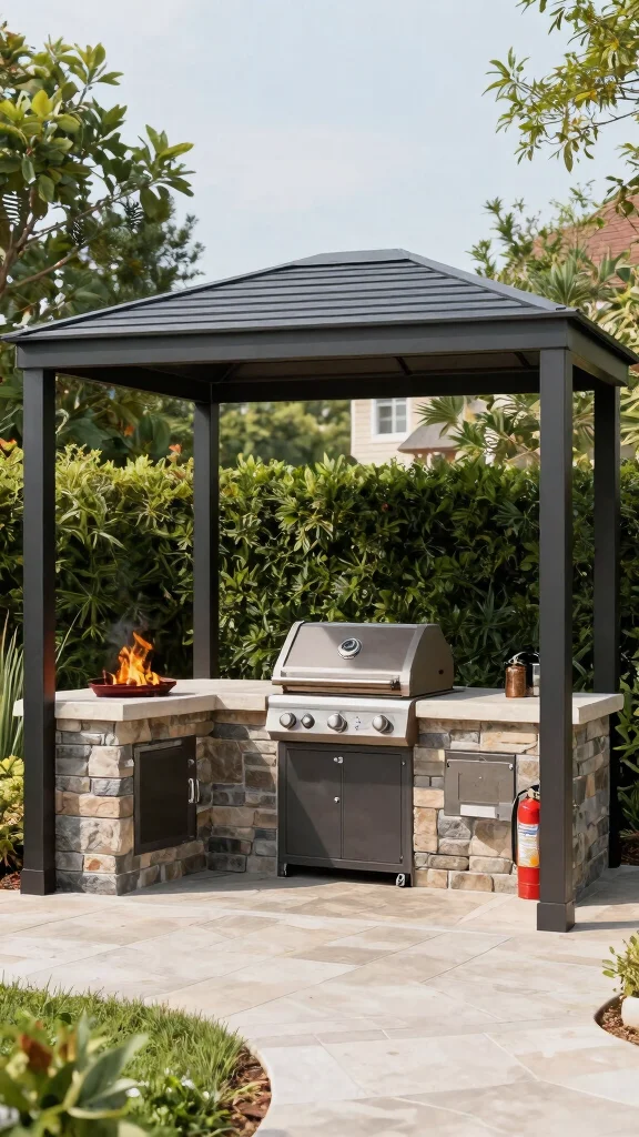 Safety should always be a priority! A fire-resistant BBQ pergola is crucial for outdoor cooking, especially during the warmer months. Using materials like metal or fire-resistant wood provides peace of mind as you enjoy your grilling sessions. Pair this with a strategically placed outdoor fire extinguisher for added safety.