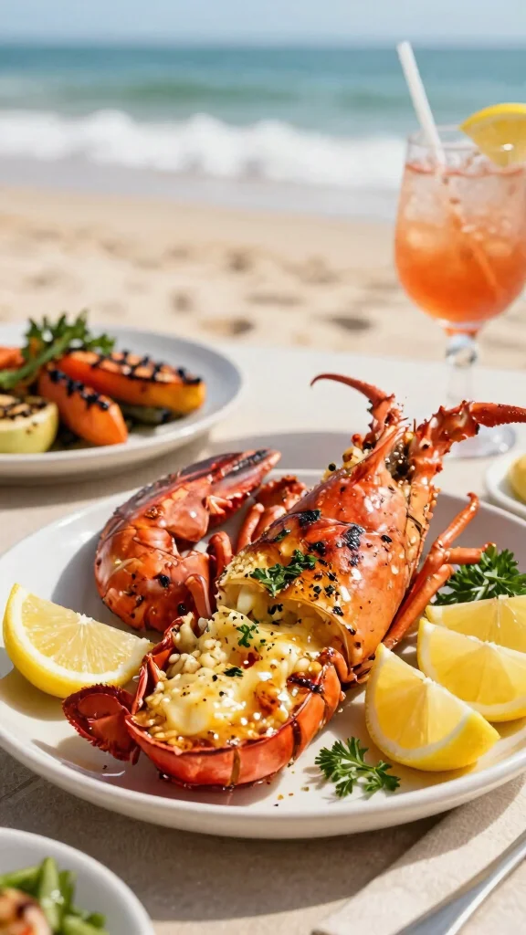 Want to impress at your beach BBQ? Garlic butter grilled lobster tails are a luxurious yet simple dish that will wow your guests! Combining melted butter with garlic, lemon juice, and fresh herbs creates a rich topping that enhances the natural sweetness of the lobster. Grilling them shell-side down ensures they cook perfectly, resulting in a tender, flavorful bite that pairs beautifully with lemon wedges.