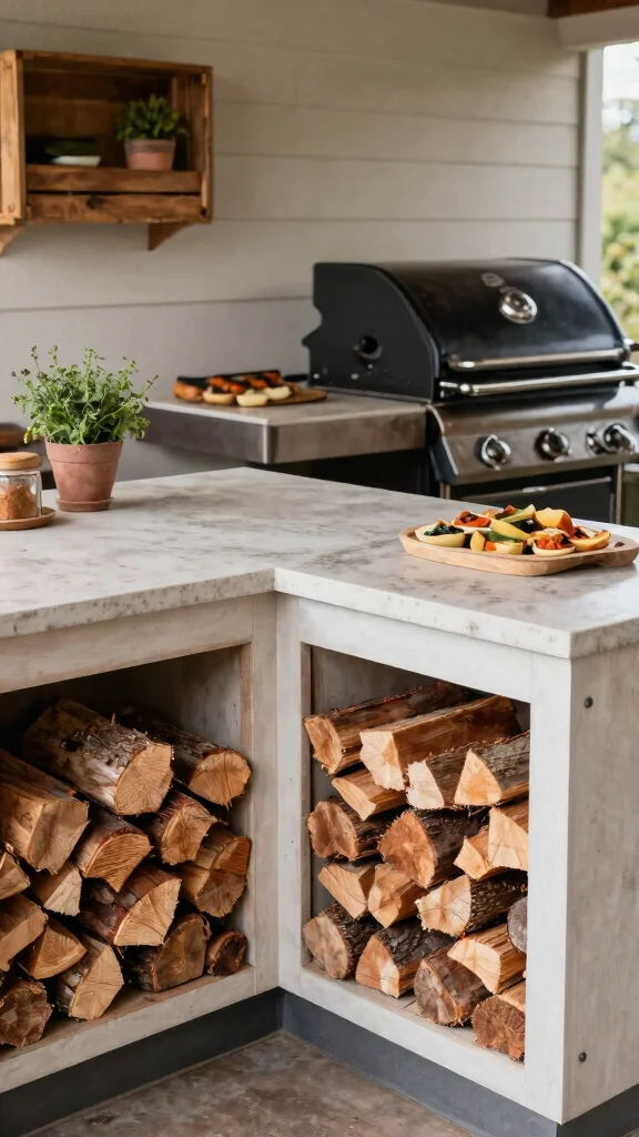 Are you serious about your outdoor cooking? A BBQ setup that includes integrated firewood storage combines functionality with style. This design ensures your firewood is easily accessible while maintaining a clean and polished look.