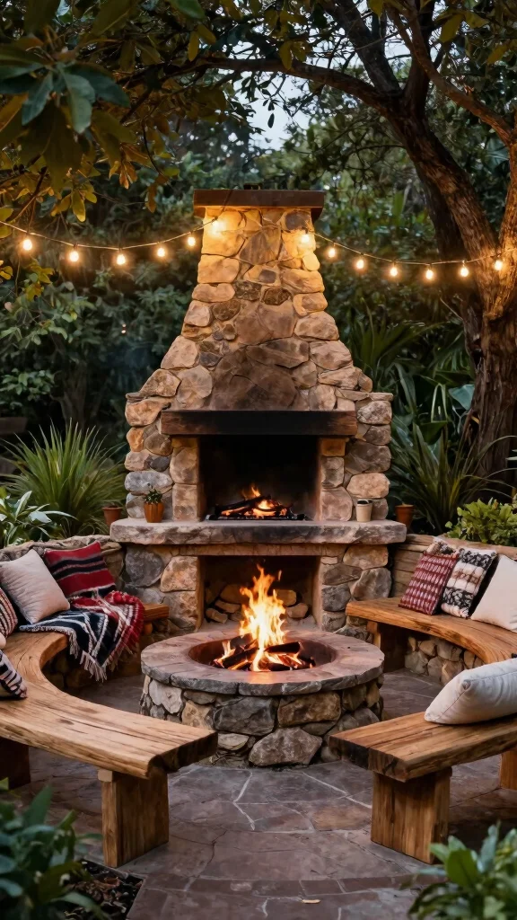 Picture a stone fire pit that adds warmth, reclaimed wood benches for seating, and a designated area for firewood that keeps your fuel close at hand. The natural textures and colors create a serene environment. Surround the pit with blankets and pillows to enhance comfort, making it an ideal spot for evening get-togethers.