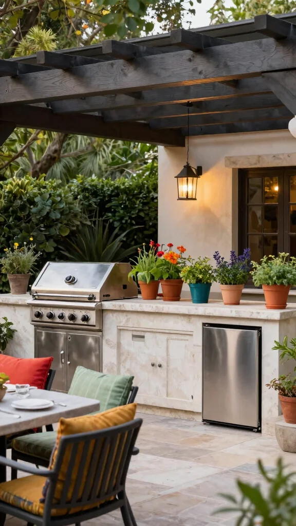This chic outdoor kitchen invites you to explore culinary delights while enjoying relaxed dining experiences.