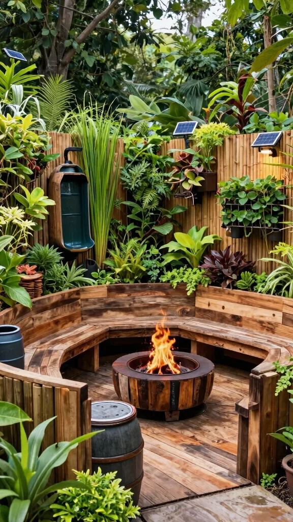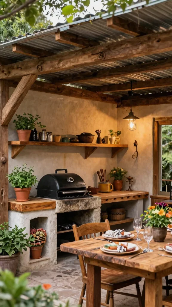 Using reclaimed wood can further boost the eco-friendly aspect, while vintage decor elements like old lanterns can add character. Include a small prep station beside the grill, and a rustic wooden table for enjoying meals outdoors, making this space a wonderful addition to your garden.