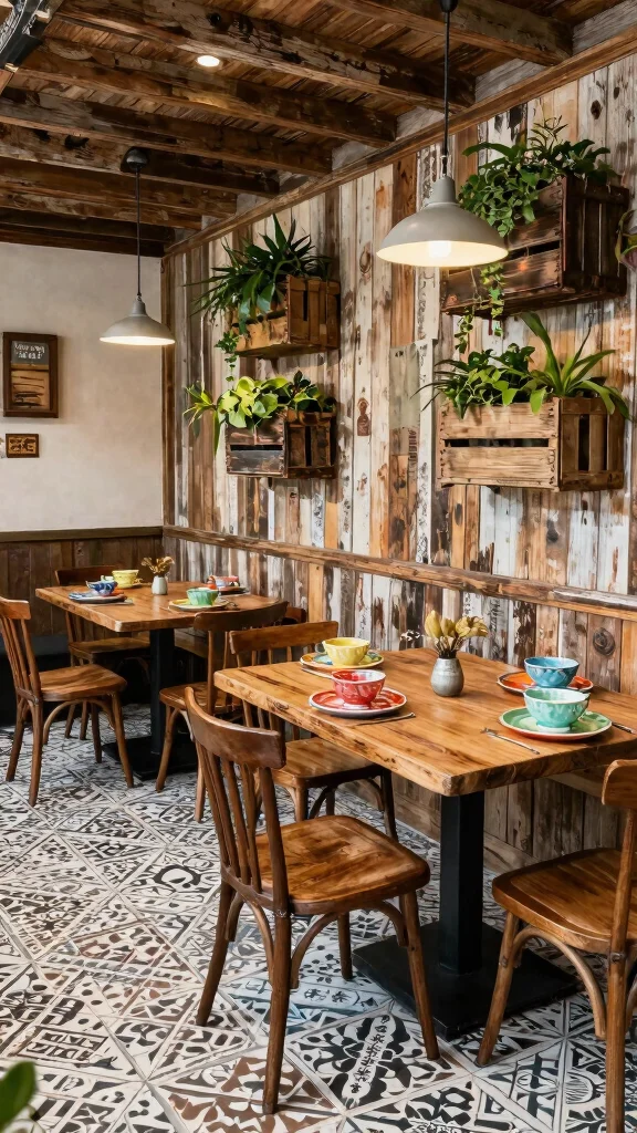Rustic wooden furniture paired with floral cushions adds a charming touch that invites relaxation. This cozy setup encourages long meals filled with laughter and connection.