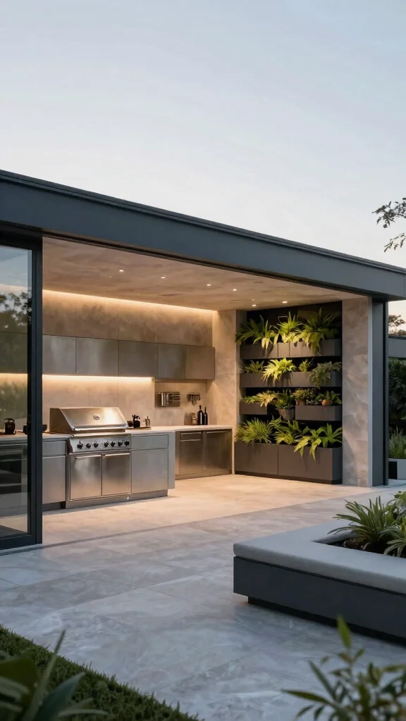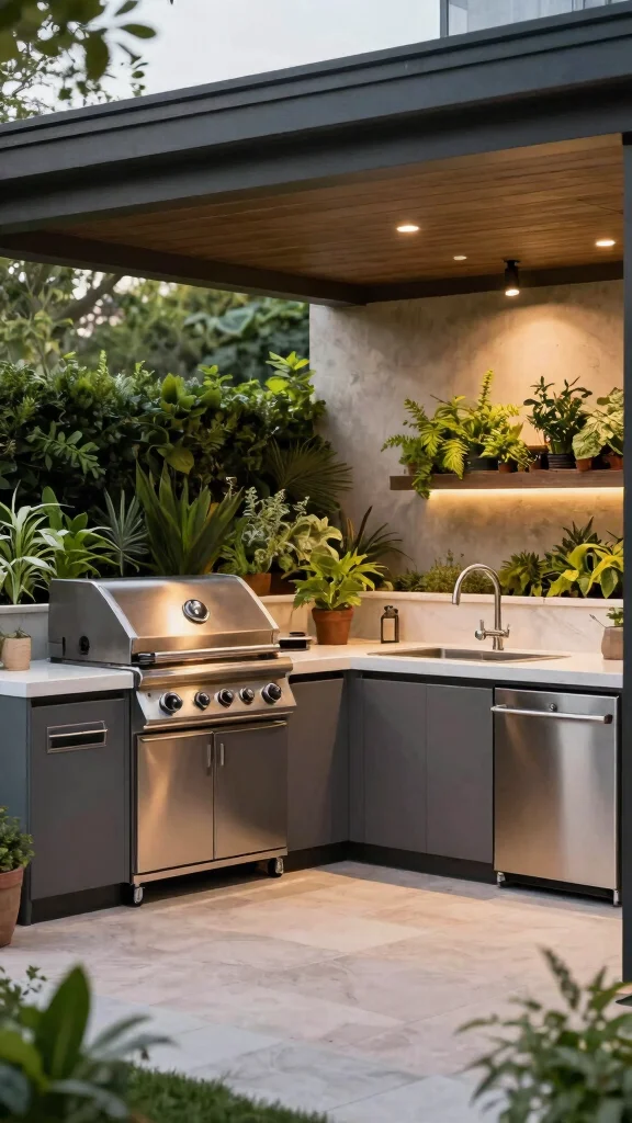 Opt for stainless steel appliances to maintain a contemporary vibe, and built-in seating can maximize your area. Adding a small bar for entertaining and hidden lighting will elevate the ambiance, making your minimalist BBQ area the ideal spot for gatherings.