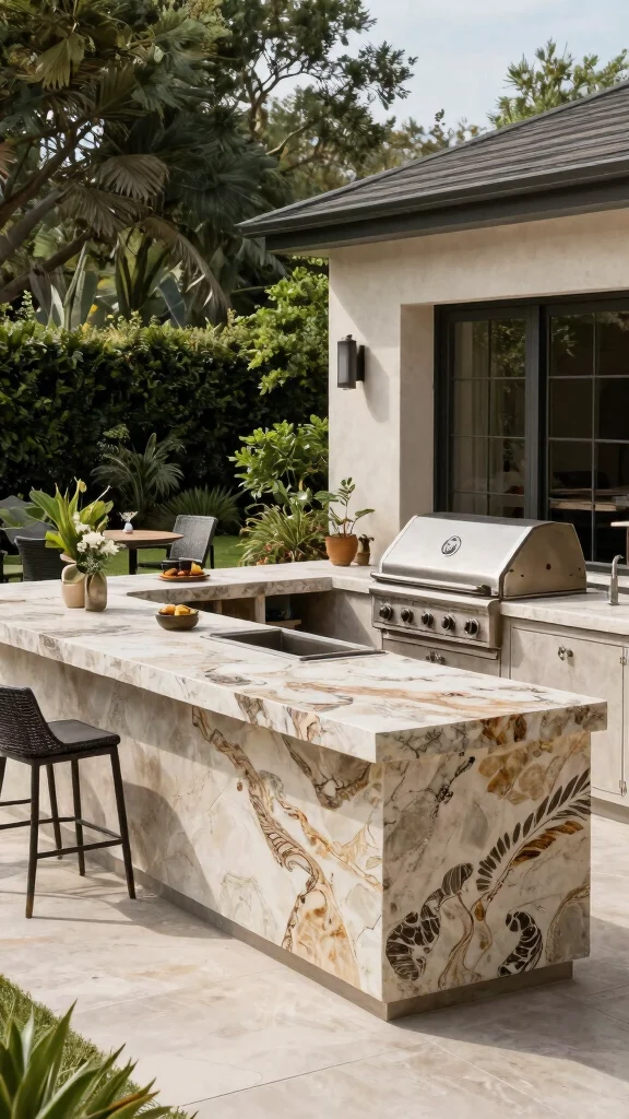 Opt for natural stone surfaces in your outdoor kitchen for durability and an eco-friendly aesthetic.