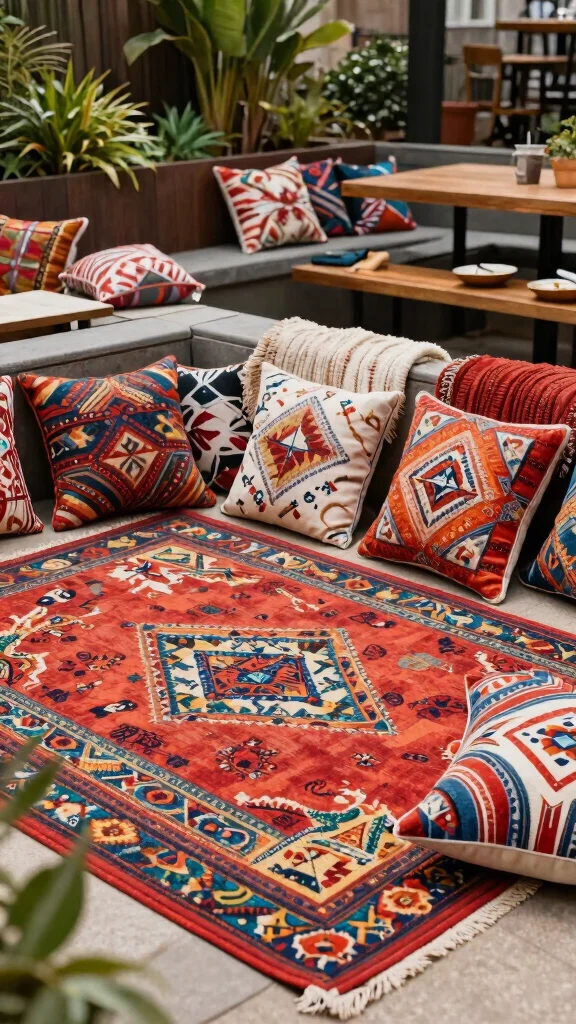 Stylish Accessories: Find out how decorative elements like colorful outdoor rugs and built-in planter furniture can add both flair and functionality to your backyard design.
