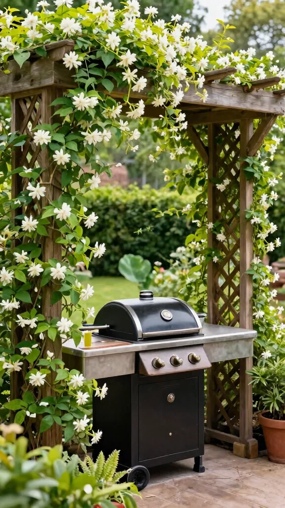 Add vertical interest to your BBQ area with decorative trellis structures that support climbing plants. Imagine grilling amidst fragrant jasmine or sweet peas, enhancing the sensory experience of outdoor cooking. These structures can also serve as natural dividers, creating distinct zones in your garden.