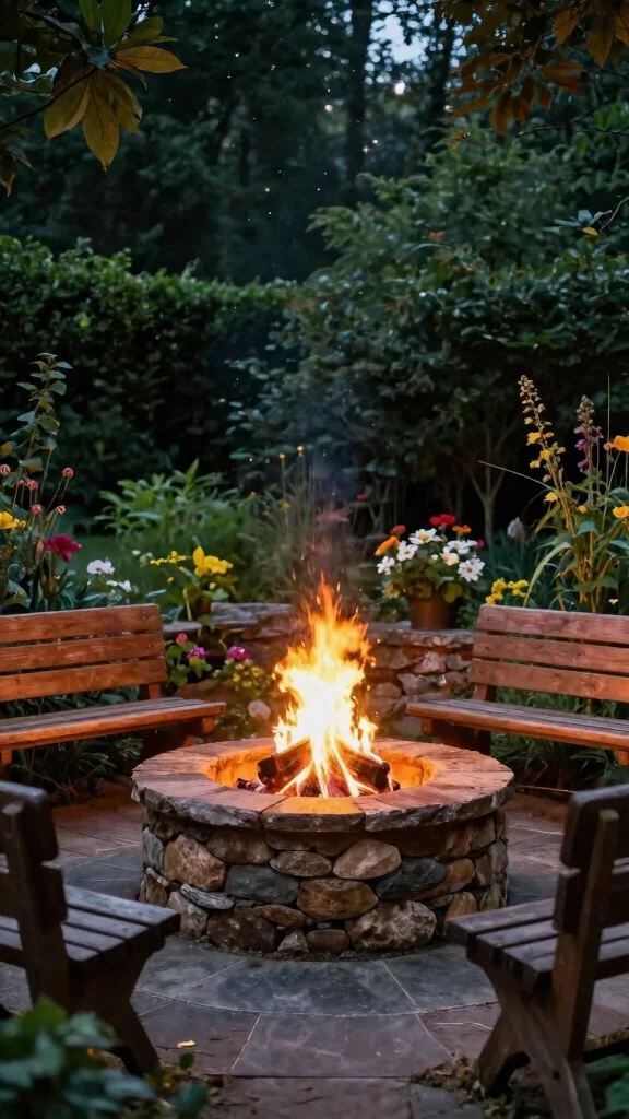 – Arrange comfortable seating around the fire for socializing.