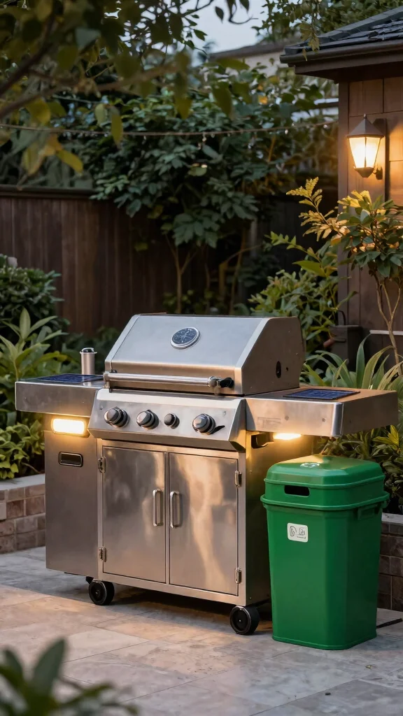 Eco-Friendly Grilling Station Solar lights, recycled materials Sustainable, waste management