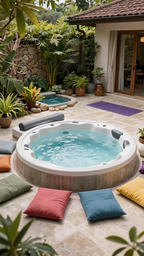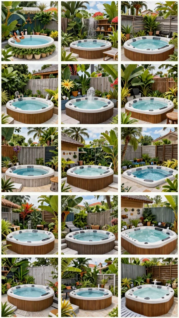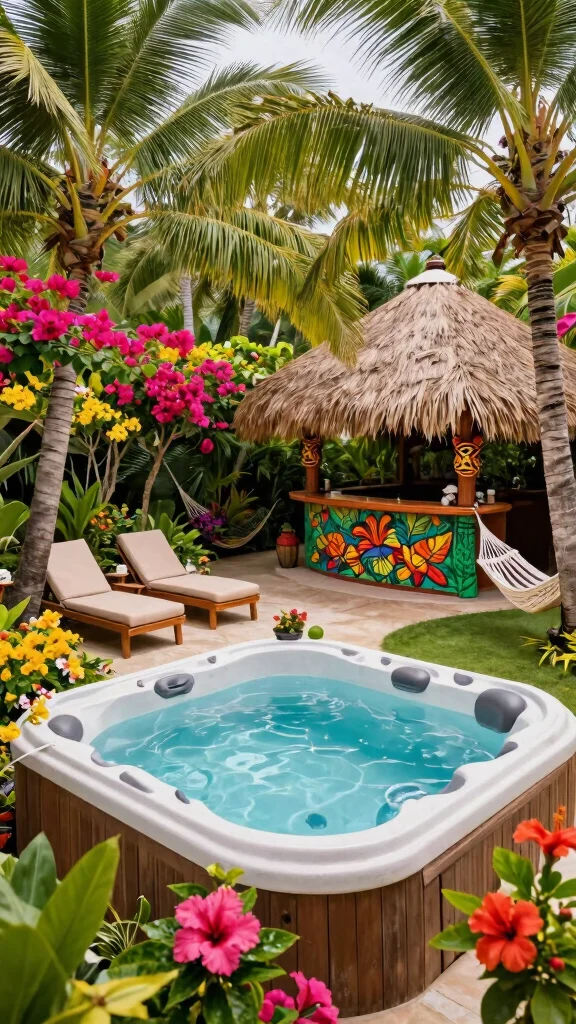 Add tropical plants and decor to create a vibrant, inviting environment around your hot tub.