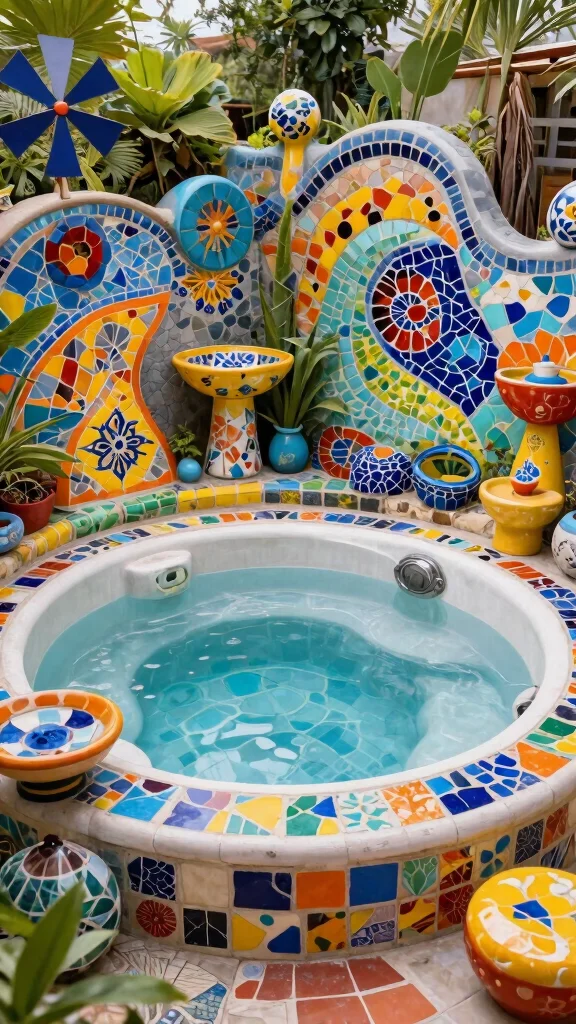 This artistic approach turns your hot tub area into a vibrant, inviting space.