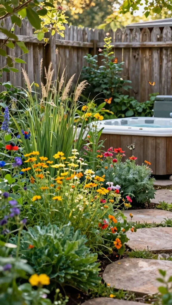 Integrating native plants into your hot tub area cultivates a vibrant, eco-friendly space that thrives with life and color.