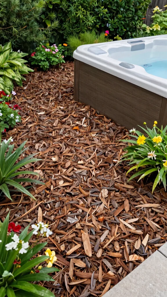 By embracing eco-friendly mulching, you foster a thriving environment around your hot tub while enhancing the beauty of your outdoor space.