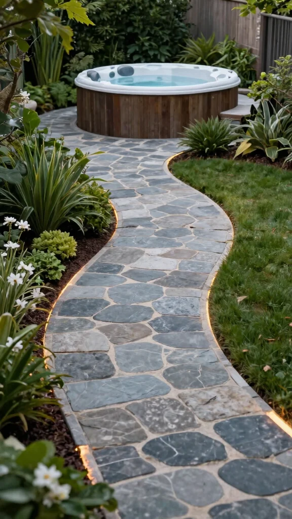 Create custom pathways with sustainable materials to enhance accessibility and guide visitors to your hot tub area.