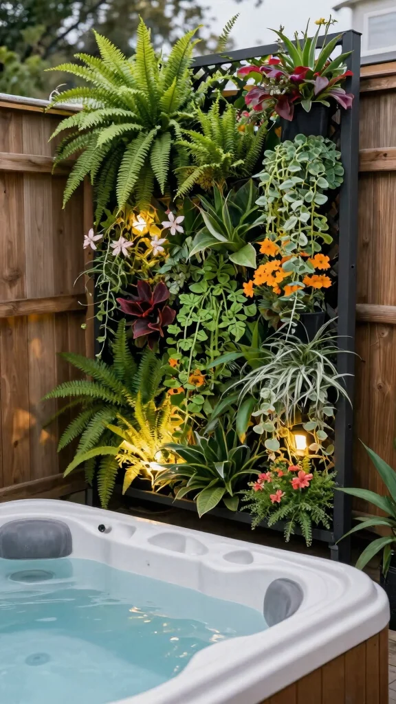 Vertical Gardens: Maximize space and add visual interest with vertical gardens that can serve as living walls around your hot tub area.