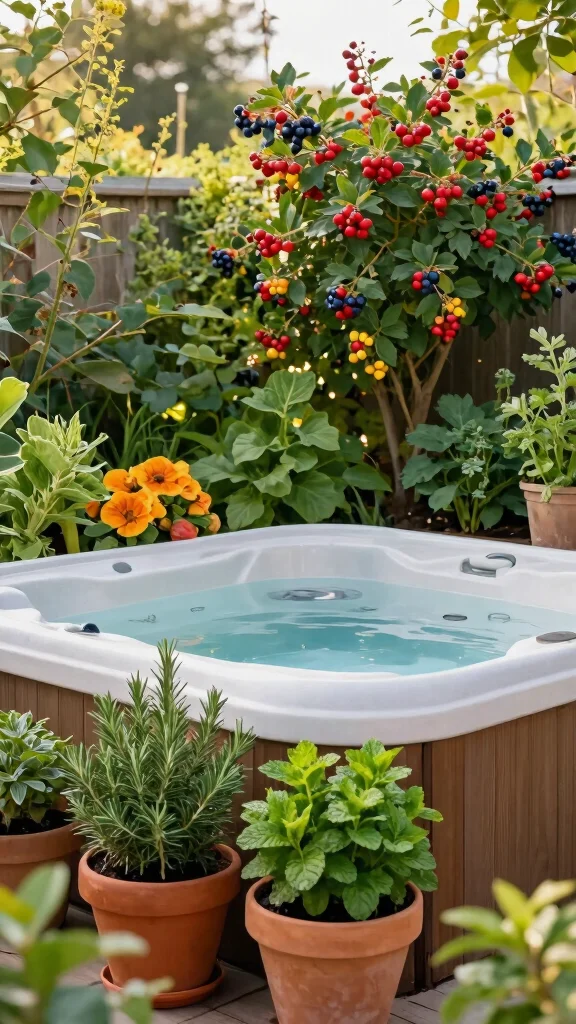 Consider planting herbs like rosemary and mint in pots around your hot tub. Berry bushes can provide both color and tasty treats, while vegetable patches can blend seamlessly into your landscape. Using pots or raised beds that match your hot tub’s design keeps everything visually appealing.