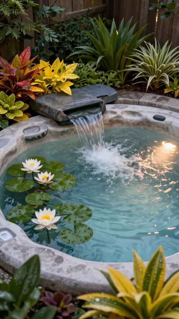 Incorporating water features transforms your hot tub area into a tranquil retreat where you can unwind and connect with nature.