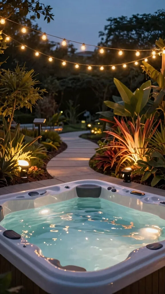 Consider using string lights overhead for a whimsical touch. Solar-powered path lights can guide guests safely to your hot tub, while spotlights can highlight key features. Layering different types of lighting adds depth and interest to your outdoor design.