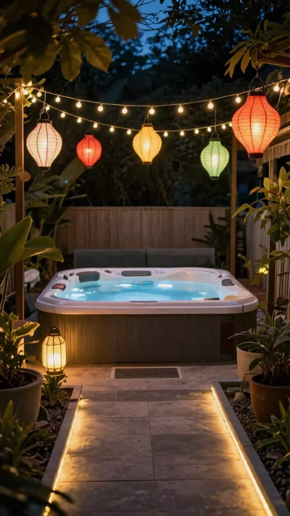 Effective lighting can transform your hot tub patio into a magical retreat without hefty expenses. String lights or solar-powered lanterns can easily be added to cast a warm, inviting glow. Use affordable LED lights to illuminate pathways, enhancing safety around the hot tub area.