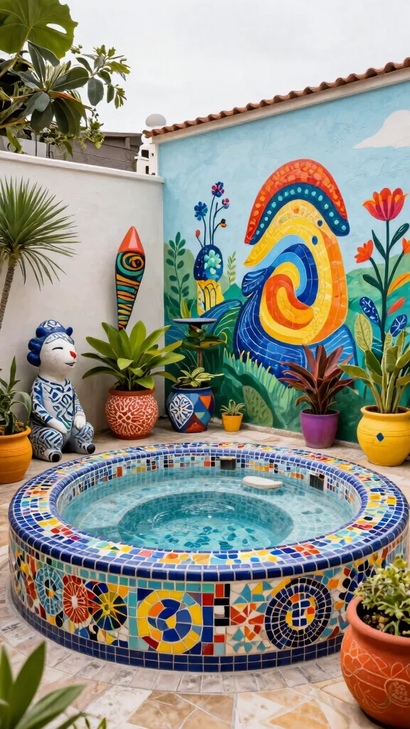 Pro tip: A splash of art around your in ground hot tub transforms it from a feature to a mood. Mix mosaics, planters, and a mural—your backyard becomes a personal retreat that sparks joy every evening.