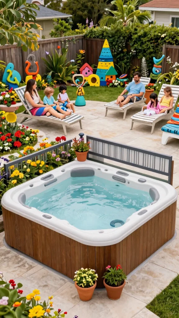 ❝ Fact: 90% of families say they spend 2x more time in a kid-friendly, in ground hot tub area when it features shallow seating and built-in safety rails. Pair it with colorful flowers and kid-safe barriers to invite play while keeping parents at ease.