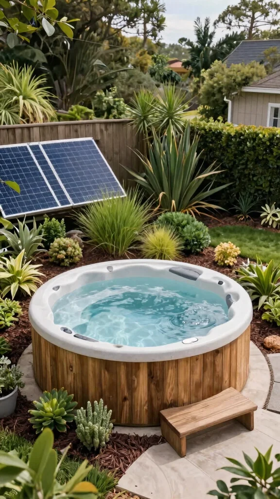 For year-round outdoor relaxation, optimize energy use with an insulated cover, a high-efficiency heater or heat pump, and a variable-speed pump that runs only when needed. Insulate the exterior with rigid foam and install windbreaks or shade to reduce heat loss. Use a programmable thermostat and keep water chemistry stable to avoid extra heating. Safety details: non-slip surfaces around the tub, handrails where needed, and a secure cover when not in use. Regularly inspect for leaks and choose weatherproof equipment to maintain comfort and safety in all seasons.